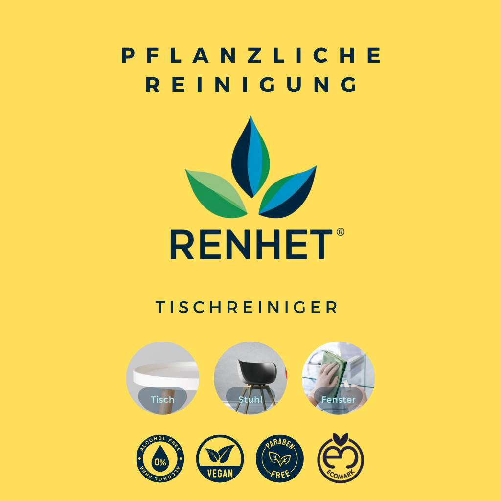 Renhet ist ein pflanzliches Reinigungsprodukt, das Sie in allen Bereichen Ihres Unternehmens bedenkenlos verwenden können.